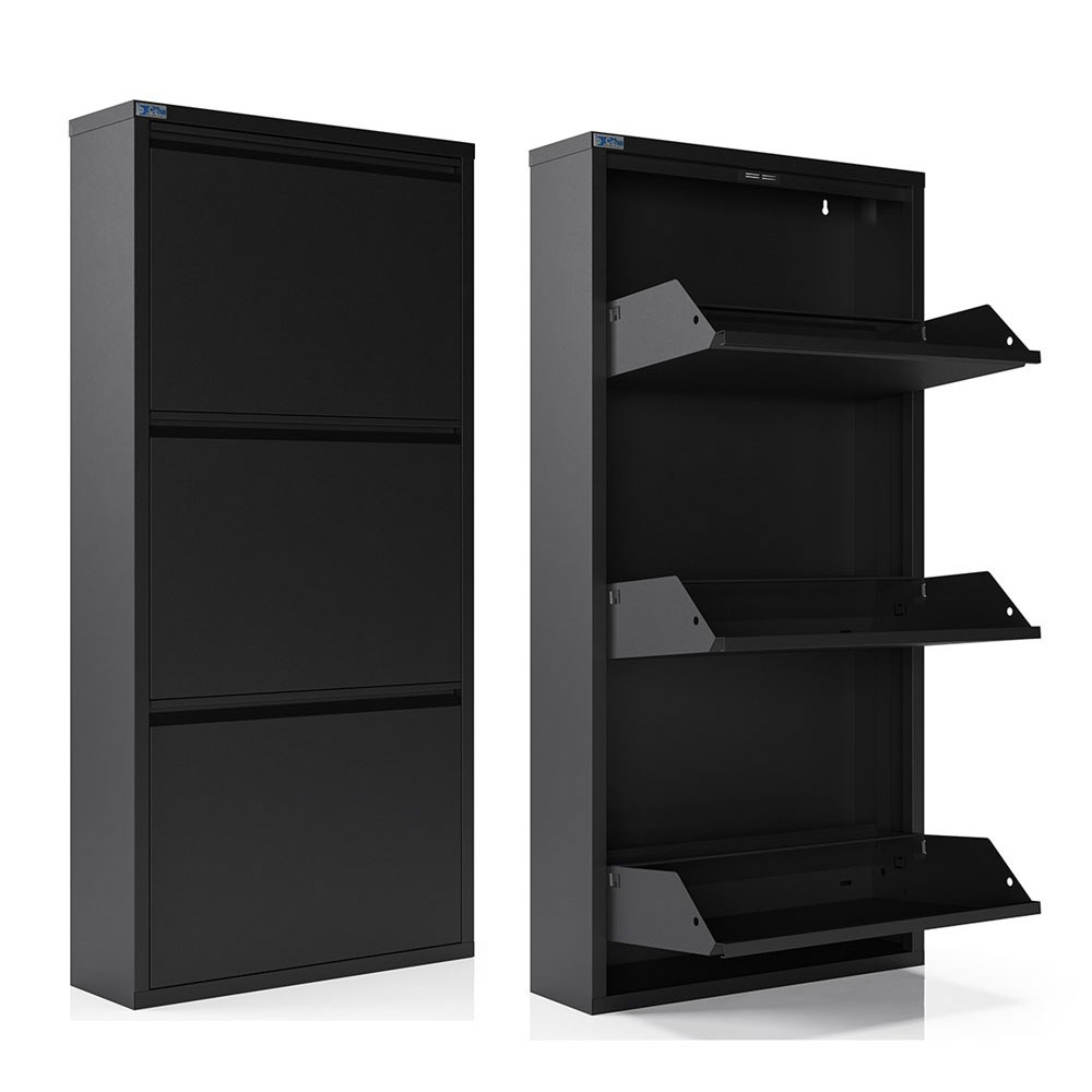 Metalni Cipelar Sa 3 Ladice sa svojim stilskim dizajnom daje drugačiju ljepotu vašem domu. Zahvaljujući svojoj prenosivosti, proizvod možete koristiti gdje god želite u i van vašeg doma. Metalni cipelar sa 3 ladice nudi higijenu za kojom tragate sa perforiranim modelom koji obezbjeđuje ventilaciju. Ova osobina čuva vašu obuću od vlage i sprečava skupljanje ružnih mirisa. Sa 2 para obuće na svakoj polici vaša dnevna potreba je osigurana. Također, možete montirati proizvod na zid na rupama koje se nalaze pozadi ukoliko imate potrebu. Poklopci se zatvaraju sami od sebe pomoću magneta tako da se ne morate brinuti da će ostati otvoreni.