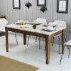 Milan Trpezarijski Stol, dimenzija 14 × 88 × 75 cm, idealan je za savremene domove. Sa radnom pločom od suntalama u boji oraha ili bijelog mramora i čvrstim drvenim nogama, sto nudi kombinaciju elegancije i izdržljivosti. Zahvaljujući centralnom mehanizmu za proširenje, Milan Trpezarijski Stol pruža dodatni prostor za posluživanje, dok skriveni pretinci povećavaju praktičnost. Dolazi rastavljen radi lakšeg transporta, uz jednostavno sastavljanje i dvogodišnju garanciju.