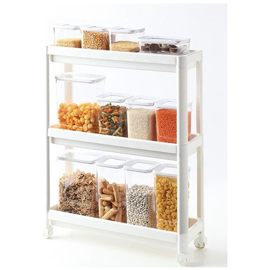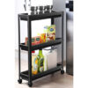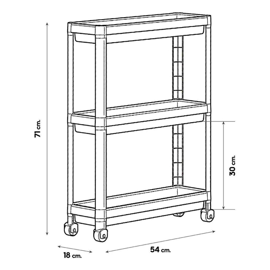 Rail Polica sa Točkićima na 3 Nivoa za kuhinju, izrađena od plastike, idealan je organizator za kupatilo, kuhinju ili balkon . Sa uskom i praktičnom 3-polnom konstrukcijom, Rail Polica sa Točkićima na 3 Nivoa za kuhinju, omogućava uredno skladištenje šampona, sredstava za čišćenje ili kuhinjski pribor, a njegov tačkasti dizajn olakšava pomjeranje.